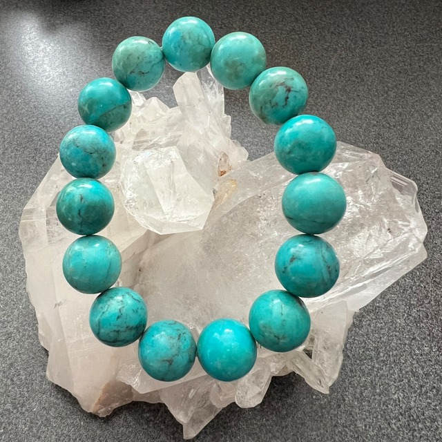 少し大きい12ミリのターコイズのブレスレットです。 旅のお守り インスピレーションを高める 自己実現を助ける 正しい判断に近づける 邪悪なエネルギーや災いから身を守る 宇宙的な意識や情報を受け取る助けとなる 12ミリ 15.5〜16センチ