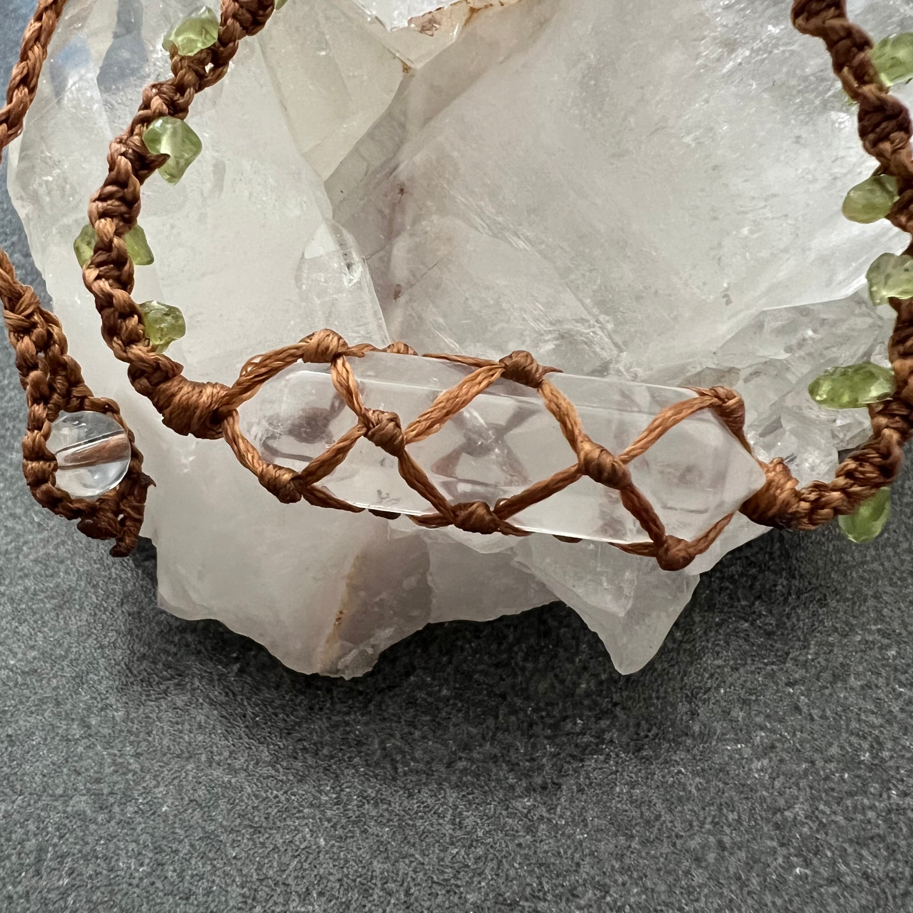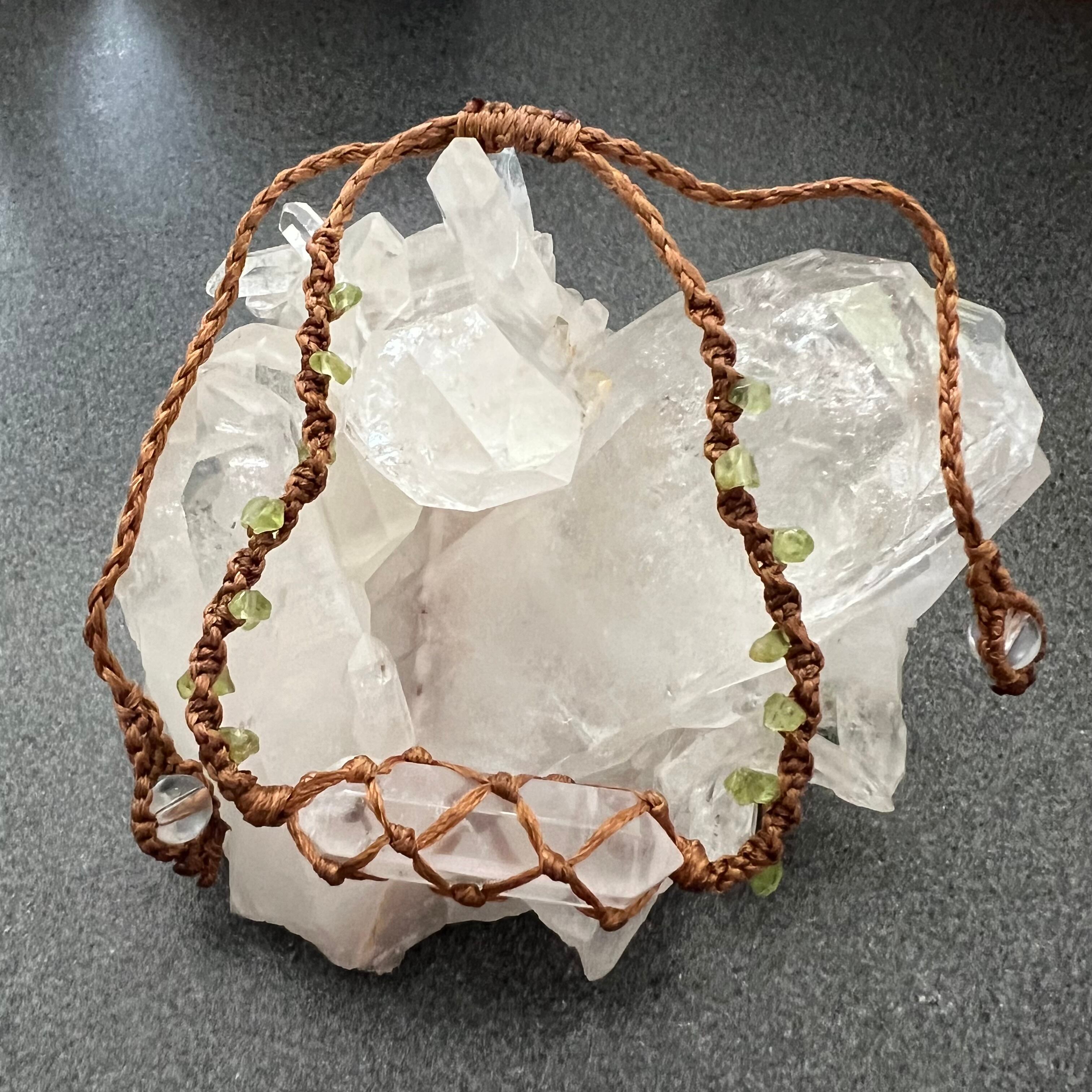 ※マクラメ編みは水に濡れると、柔らかくなったり、色あせ等の劣化を起こしてしまう場合がありますので、お風呂、プール、海水浴などの場面では取り外しする事をおすすめしております。