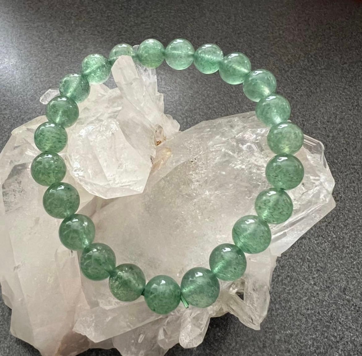 アベンチュリンにはいくつかのカラーバリエーションがあり、フックサイト(クロム雲母)などによって緑色に変化したものをグリーンアベンチュリンと呼びます。