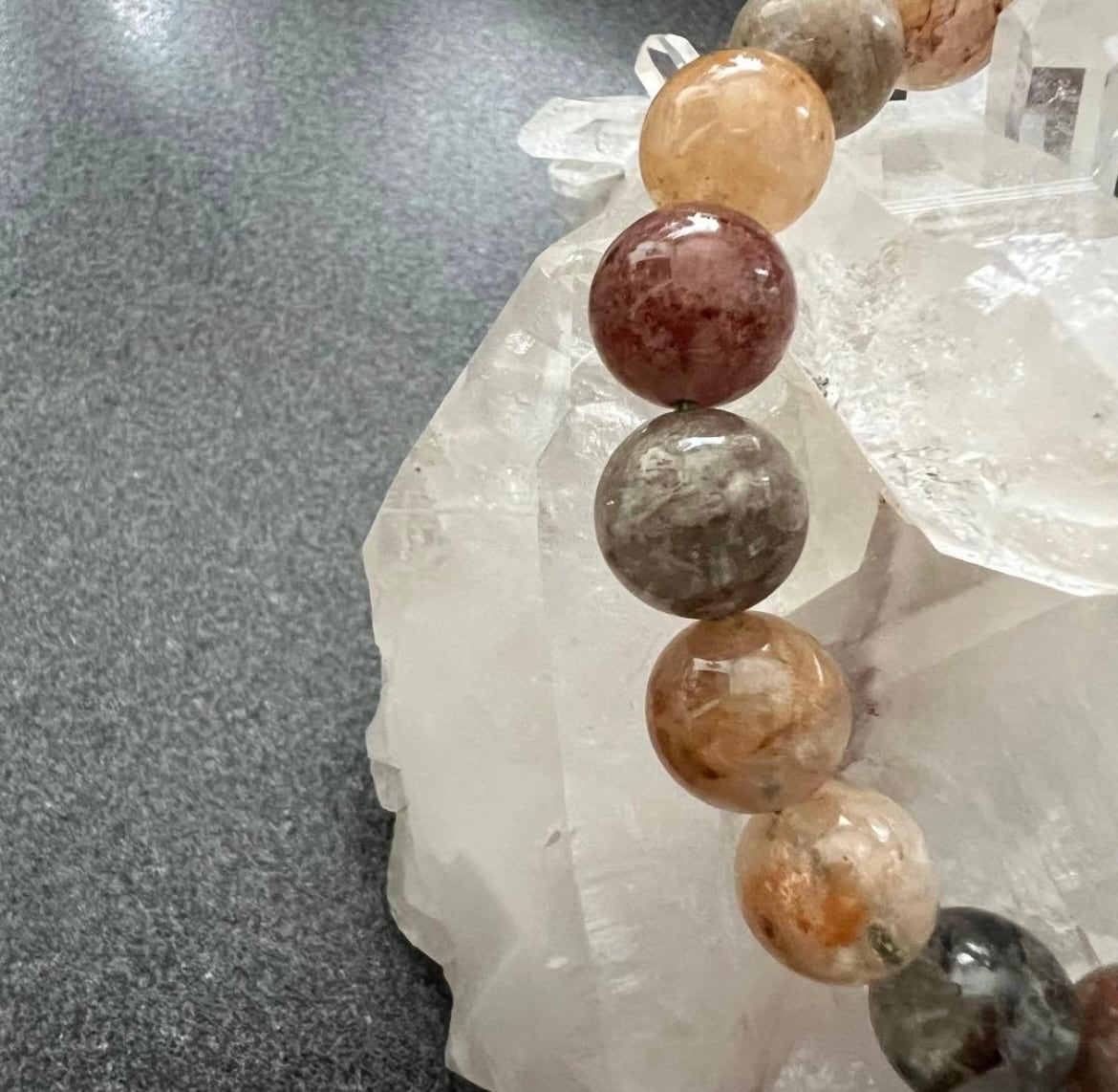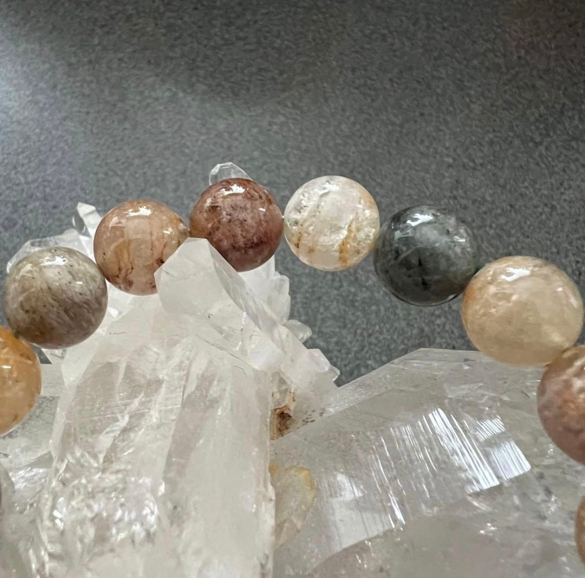 水晶体の透明度が高く、ファントムとの境界がはっきりした部分もある素敵なブレスレットです。