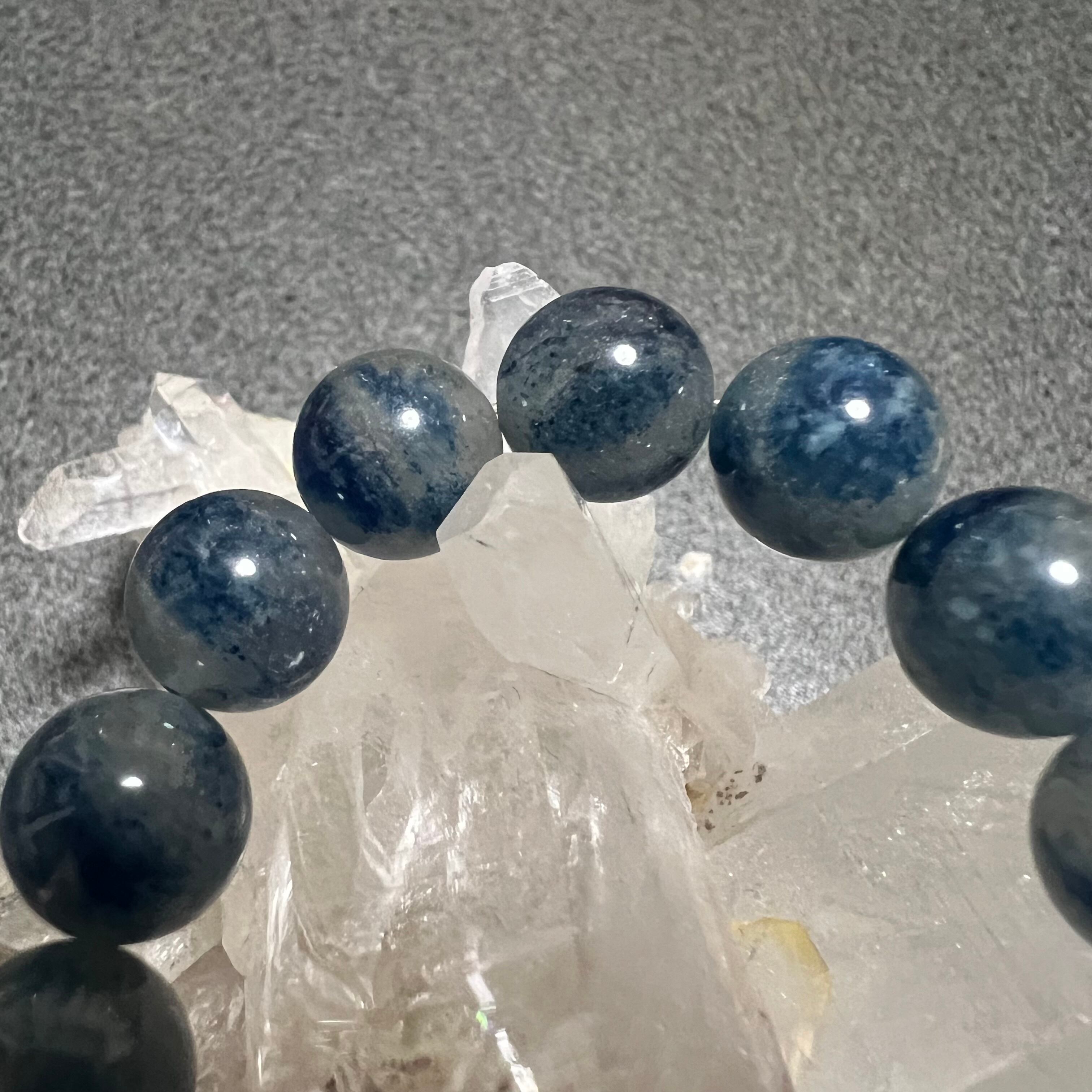 スコルザライトインクォーツは、深い青色の希少石「スコルザライト(鉄天藍石)」が水晶に内包された、流通量の非常に少ないパワーストーンです。